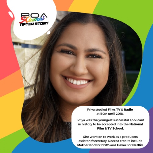 Priya studied Film, TV & Radio at BOA until 2018.